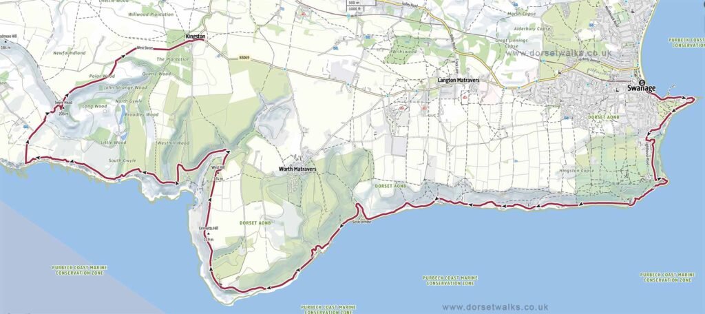 Route: Worth Matravers (Renscombe car park) – St. Aldhelm’s Head (Chapel & Radar Memorial) – Emmetts Hill – Chapmans Pool view point